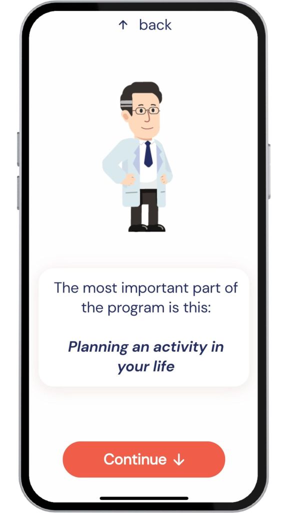 The MindAhead Active app runs on mobile devices to deliver personalised behavioral activation therapy. MindAhead Active is a class I medical device (MDR) can be used by patients independently.